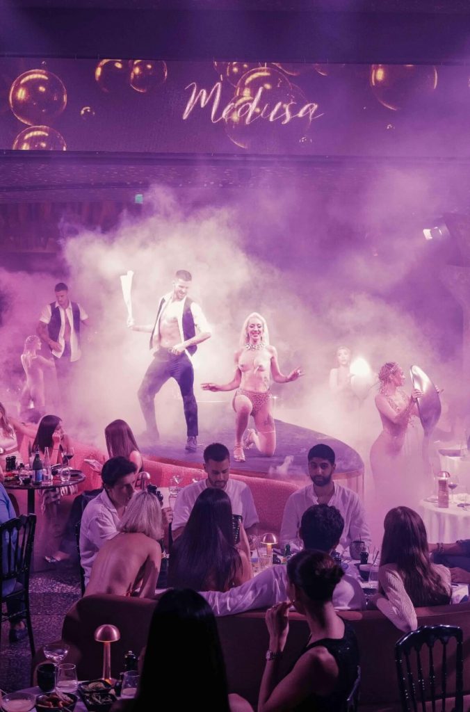 Her international career includes standout performances in renowned productions such as the glamorous Medusa Cannes dinner show on the French Riviera, where she held a three-month residency, and the spectacular Firebirds Burlesque Show, a large-scale German production that toured across the country.